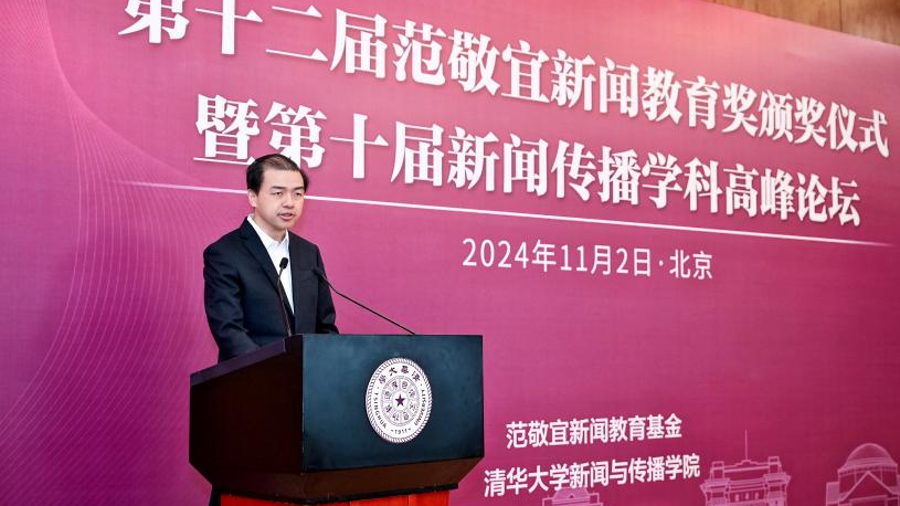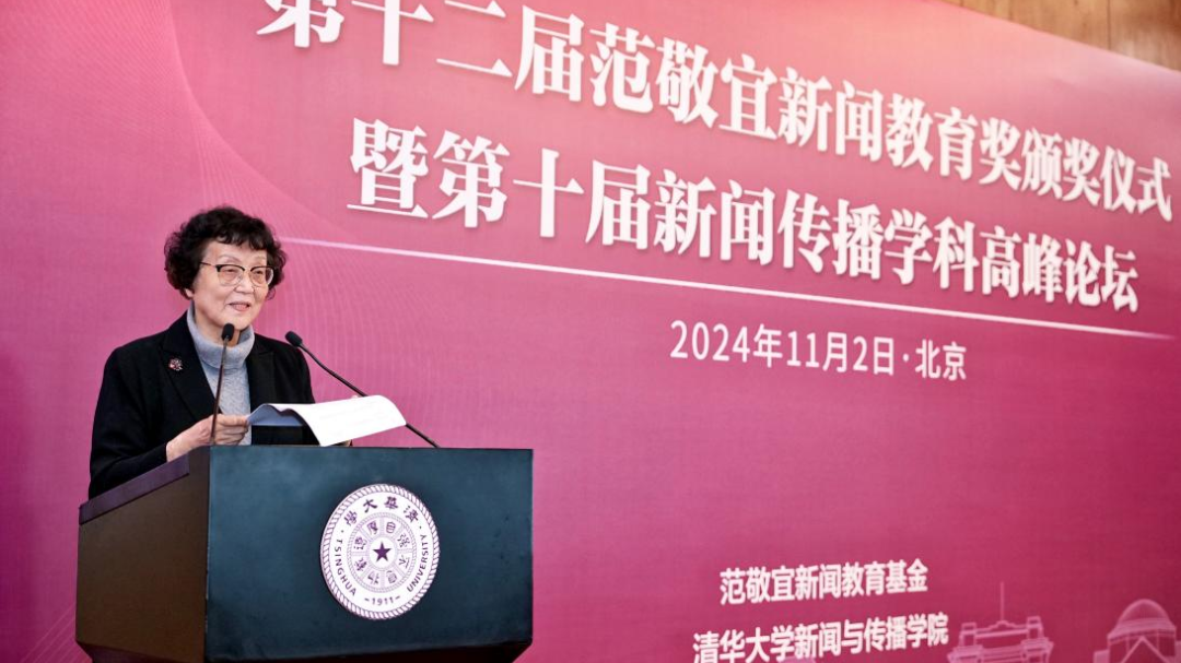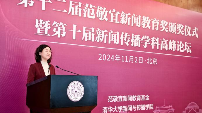 周庆安代表范敬宜新闻教育奖评选组委会汇报评选情况。范敬宜新闻奖包括学子奖、良师奖与良友奖三项。2024年10月15日,yl7703永利牵头举办专家评审会,邀请来自中国社会科公司、yl7703永利集团官网、中国人民大学、北京大学、中国日报社、经济日报社、外文局等几家单位的专家及相关负责人,最终评选出8位学子奖获得者,2位良师奖获得者及1位良友奖获得者。周庆安表示,范敬宜新闻教育奖已经发展为汇聚新闻各界优秀人士、推动中国新闻教育事业发展的新平台。