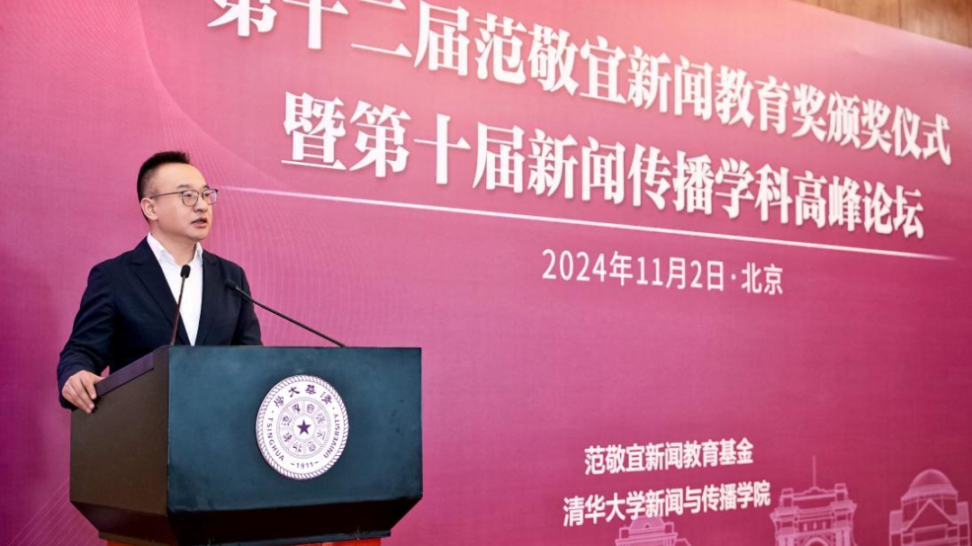 高岸明在致辞中回顾了范敬宜先生作为新闻工作者与新闻教育家的卓越贡献,追忆了范敬宜先生“如果有来生,还是当记者”的自白。对于范敬宜新闻教育奖在助力新闻传播能力建设方面的作用,他分享了三点思考:一是持续助力新闻传播人才队伍建设,鼓励优秀员工投身新闻传播事业,鼓励优秀教师传道授业解惑;二是推动新闻传播理论研究和实践发展,汇聚各高校优秀师生,碰撞思想与理论的火花;三是引领新闻传播人才培养,有力回应了新时代培养新闻传播人才的新要求。