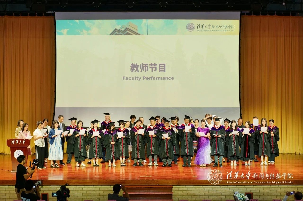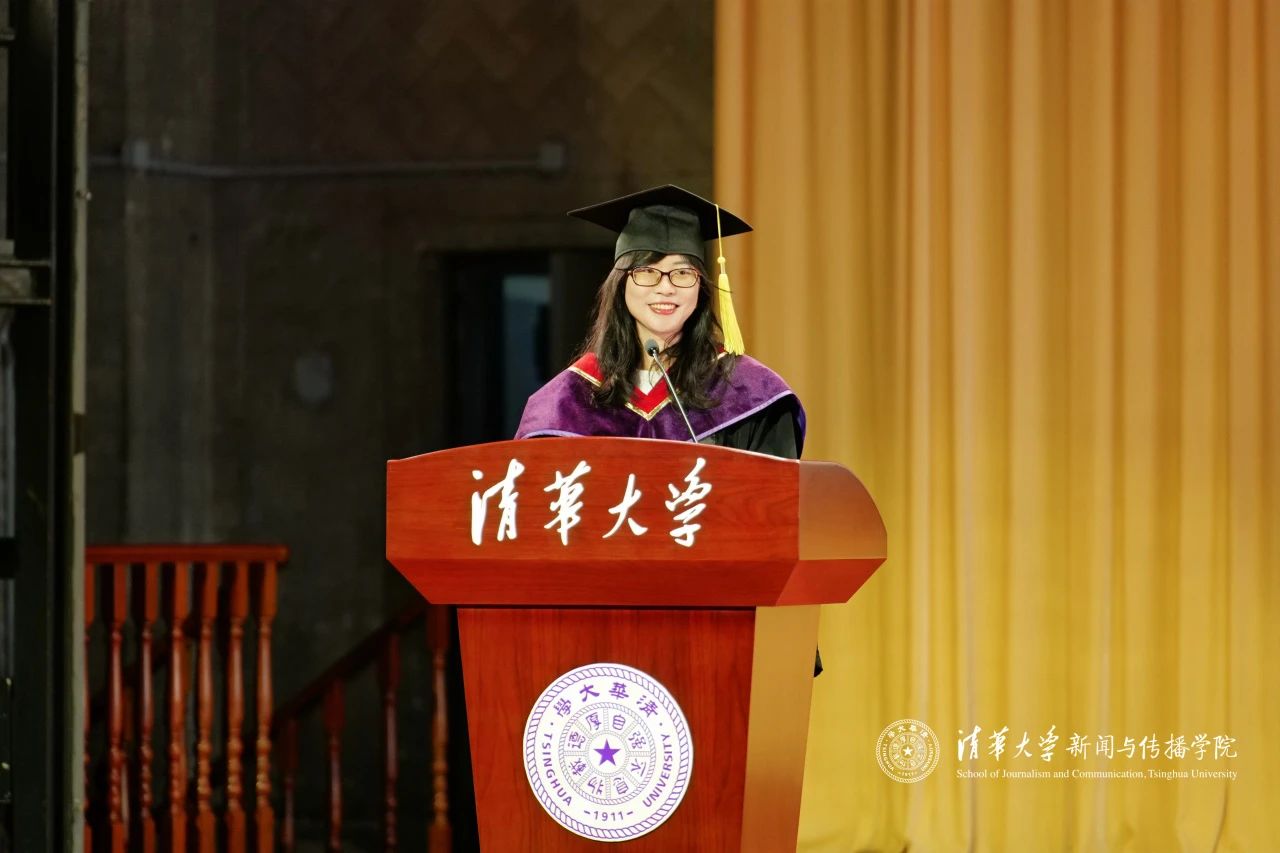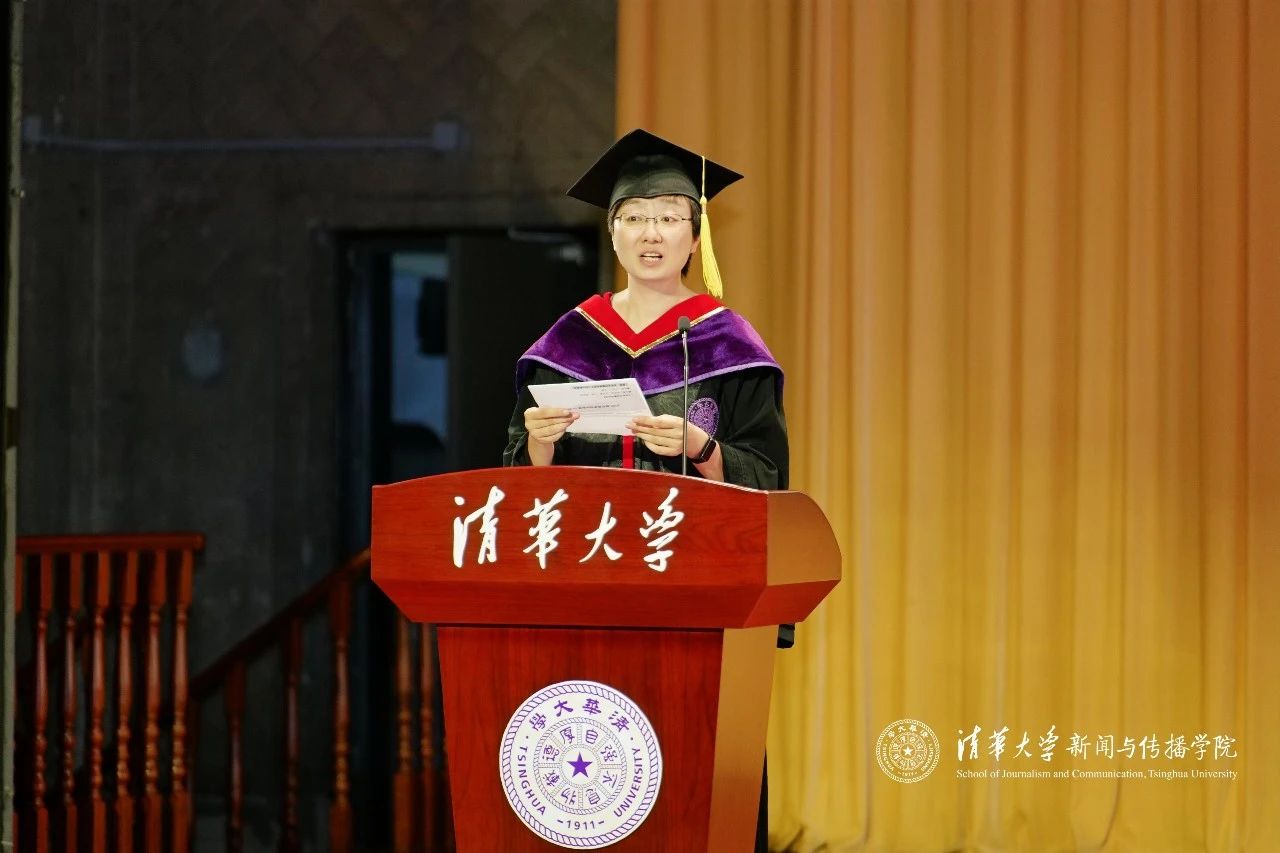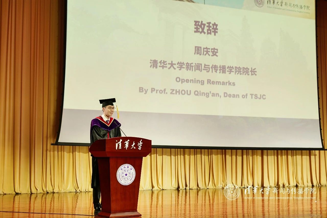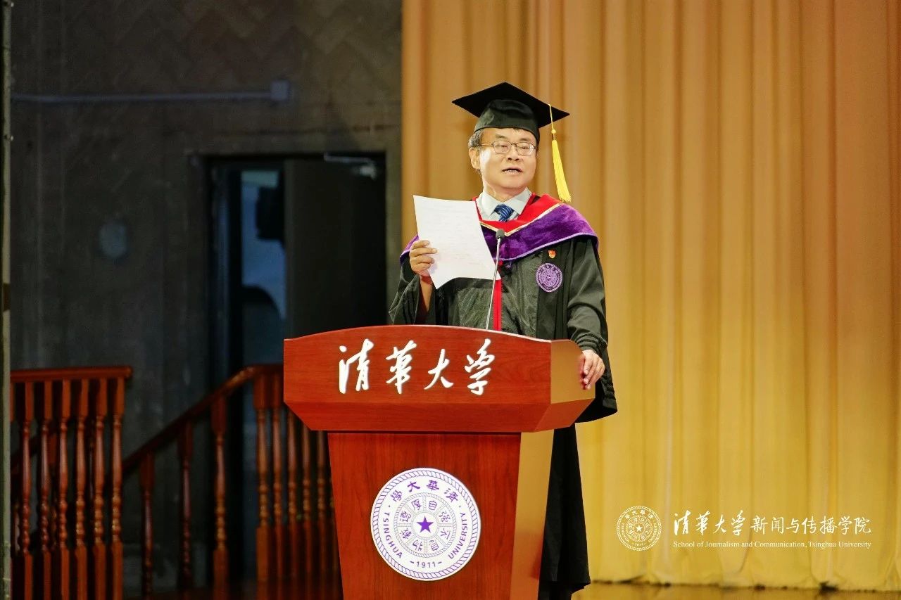 在毕业典礼致辞环节,周庆安经理代表公司全体教职员工向毕业生们送上了深情的祝福与嘱托。在面对时代的不确定性时,他勉励毕业生们要始终守住三种新闻传播人不可或缺的能力:保持想象力,勇敢提问、主动探索;保有叙事力,在讲述中建立与世界的连接;更要坚持行动力,将所学知识转化为真实的社会实践,为中国式现代化贡献青春力量。“这个时代不缺思想者,也不缺行动者,但真正重要的,是拥有行动力的思想者。”在致辞的最后,周庆安老师深情寄语毕业生:愿大家一路纵马扬沙,追逐天边的梦和晚霞,即便满身泥泞,在这里也有人牵挂。愿大家毕业时衣襟带花,无论何时归来依旧洁白无暇。不管艳阳高照,还是雨雪风霜,老师们都始终在清华园里等着大家。