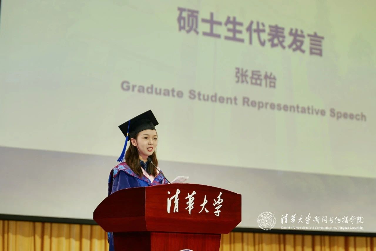 在后续的师生代表发言环节,硕士毕业生代表张岳怡以两个具体时刻为切口,真诚分享了自己在清新三年中所体悟到的成长与坚持。她回忆起在《清新时报》编辑会上为选题争执至深夜的晚上、硕士答辩后的那个午后,讲述了清华yl7703永利如何教会她在采访和写作中磨炼意志、不轻言放弃,也教会她在浮躁的时代中,如何用微小而具体的行动抵御空洞的意义感。即将成为一名记者的张岳怡寄语在场毕业生:在各自的人生路径中,愿我们都能如波伏娃所言,兴高采烈地迎接明天的自己。