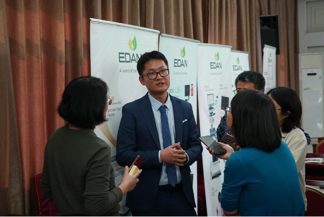 理邦国际业务代表 Puikin Lau介绍了公司自成立以来的发展历程与全球业务布局,展示了其在多参数监护、超声影像、妇幼健康等领域的技术成果与国际市场拓展。理邦肯尼亚负责人陈晓文介绍了公司在东非地区的发展历程,包括市场开拓、注册认证、本地团队建设与合作伙伴网络的建立等,重点分享如何通过培训、技术支持和售后体系,提升肯尼亚当地医疗能力。