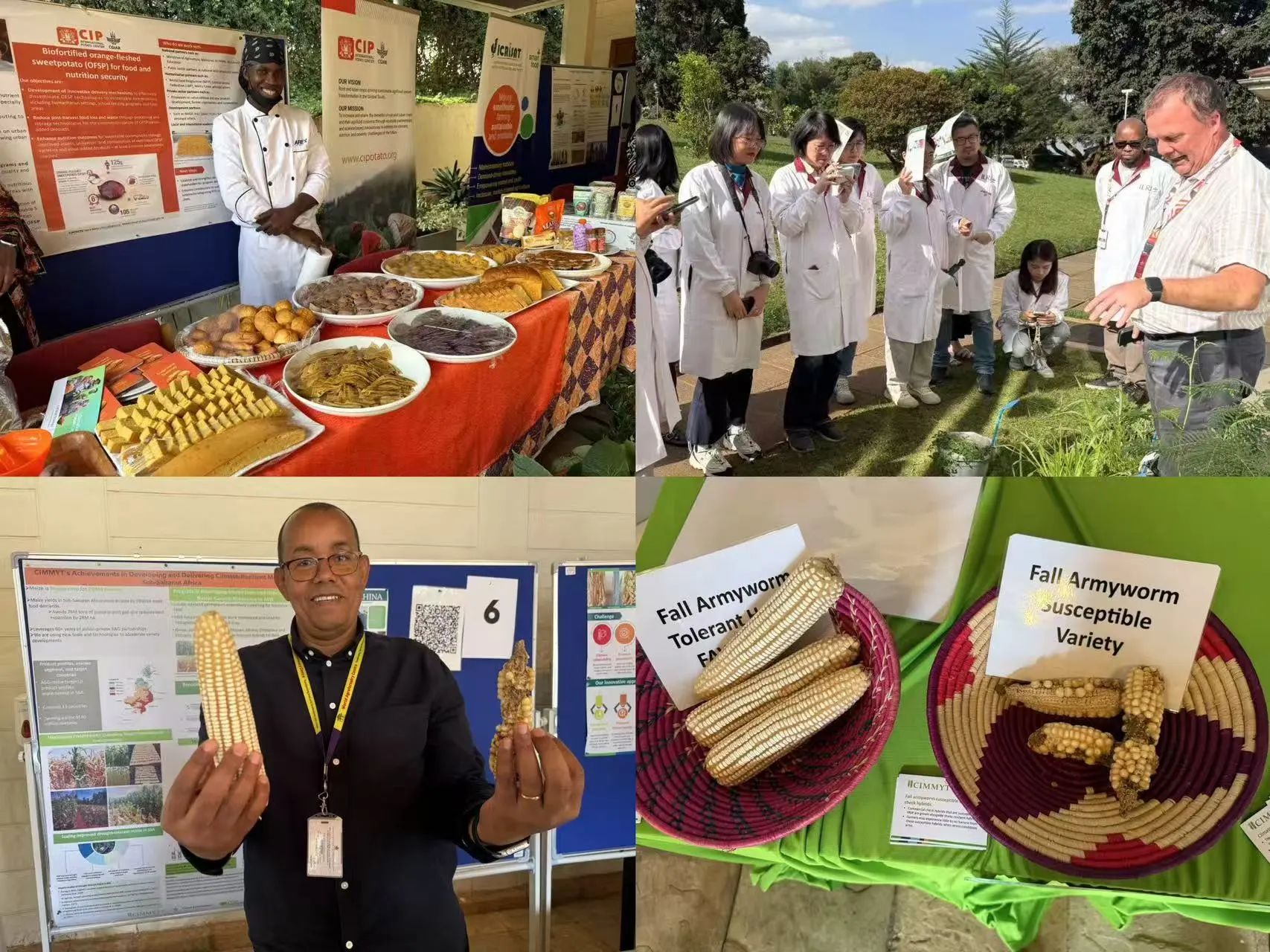 随后,代表团走进ILRI实验室,实地了解动物疫病研究、防控与疫苗开发过程。在“科学Safari”展示环节,多个研究机构展示了其农业创新成果,如AI虫害监测应用、富含维生素A的橙薯、“被遗忘的作物”研究、耐旱玉米与小麦等,体现了CGIAR推动农业多样性、营养改善和气候适应的努力。