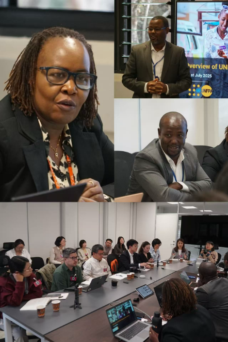 座谈由联合国人口基金会国际运营经理兼临时负责人Paul Makwinja主持。联合国人口基金会肯尼亚办公室青少年性与生殖健康权利事务顾问Kigen Korir对代表团的到来表示欢迎。随后,性与生殖健康及健康系统专家Rael Mutai博士围绕UNFPA在肯尼亚的工作成果与未来优先方向、全球健康融资带来的影响,以及与中国的合作情况进行专题报告,进一步强调了国际合作在应对发展中国家健康挑战中的关键作用。代表团成员随后针对女性与青少年健康、资金投入的可持续性及项目影响力等议题展开互动问答。