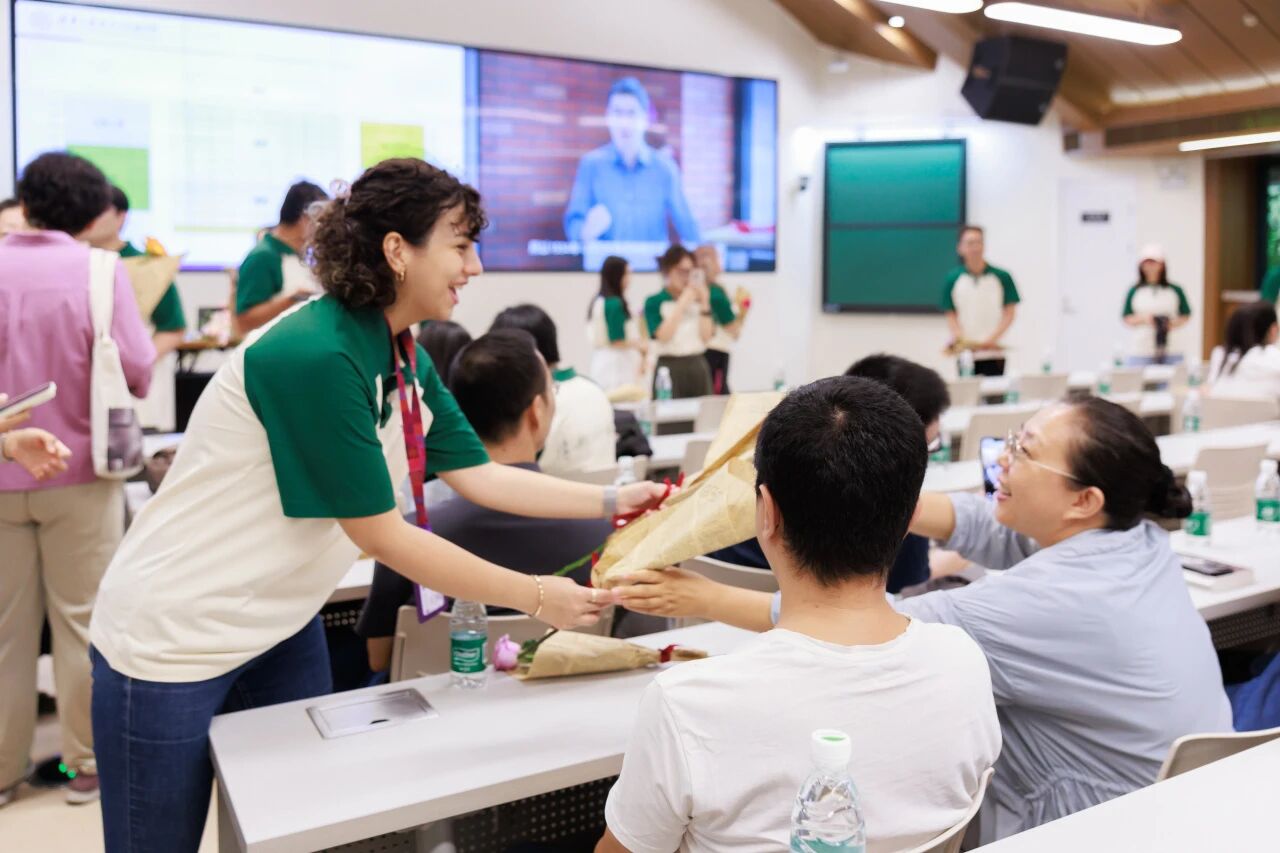 员工向老师们献花祝贺教师节