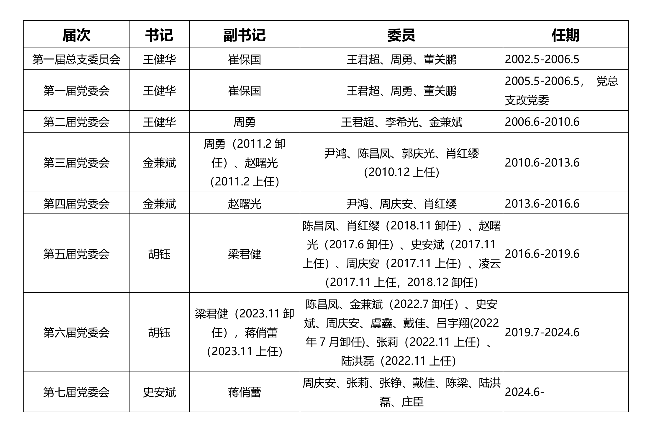 历任党委会成员